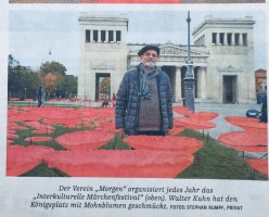 Walter Kuhn zwischen seinen 3000 Mohnblumen in München