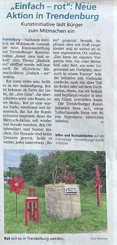 Annemarie Feuring Installation zum Thema Rot in Deisel-Ortseingang aus Richtung Trendelburg